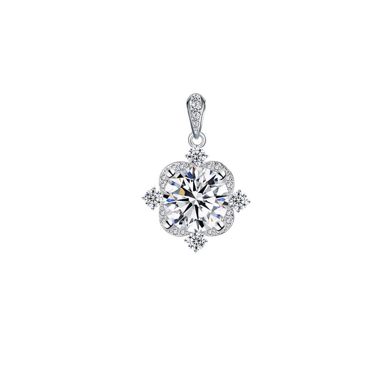Elevate your elegance with this exquisite crystal pendant necklace. Featuring a dazzling central round cut crystal surrounded by four smaller crystals, each adorned with intricate detailing, this pendant offers a timeless sparkle. The rhodium-plated setting enhances its brilliance, while a sleek, polished bail completes the look. Perfect for special occasions or adding a touch of glamour to everyday attire. A stunning gift for someone special or a treasured addition to your own jewelry collection.